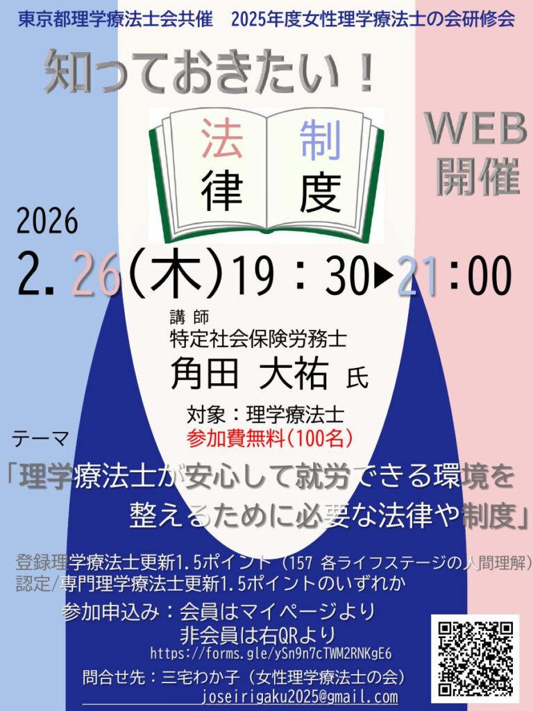 【セミナー案内】2025年度女性理学療法士の会主催無料セミナーのお知らせ